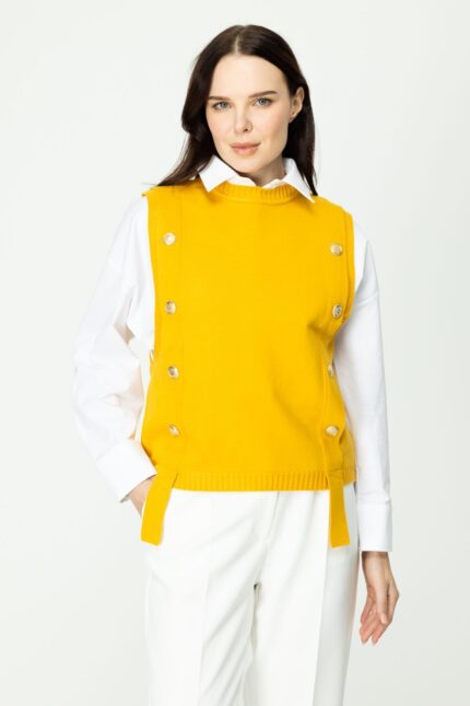 Yanları Şerit Ve Düğme Detaylı Süveter