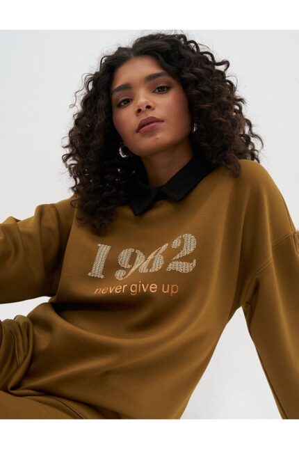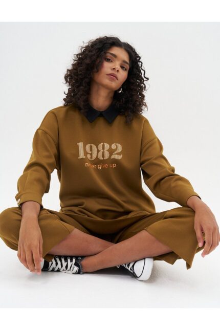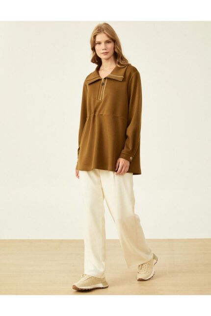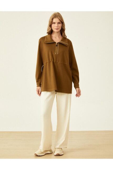 Sırtı Fermuar Kapamalı Scuba Sweatshirt Koyu Oliv