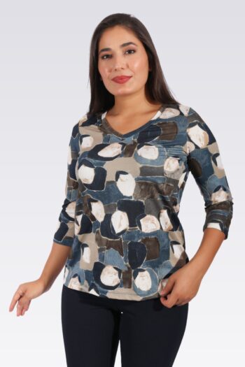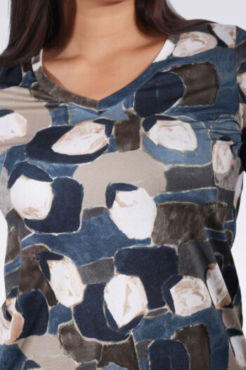 10387 MAVİ V YAKA TRUVAKAR KOL DESENLİ ÖRME BLUZ