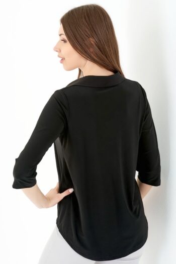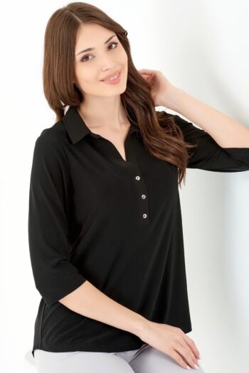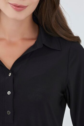 10395 SİYAH POLO YAKA TRUVAKAR KOL ÖRME BLUZ