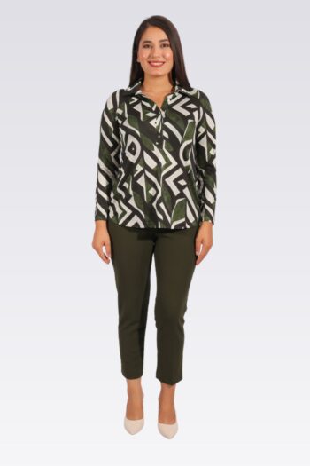 10933 HAKİ POLO YAKA UZUN KOL DESENLİ ÖRME BLUZ