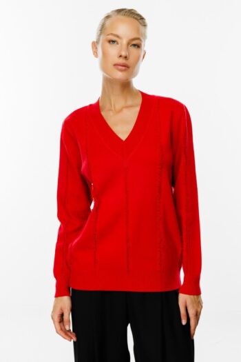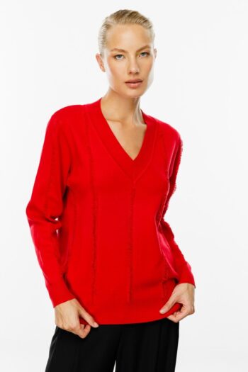– Standart boy kesimi ile günlük kullanım için ideal bir rahatlık sunar; – Triko kumaş yapısı sayesinde yumuşak dokunuşu ve konforlu yapısıyla öne çıkar; – V yaka tasarımı, şık ve modern bir görünüm kazandırırken, püskül detayları ile stilinizi tamamlar;