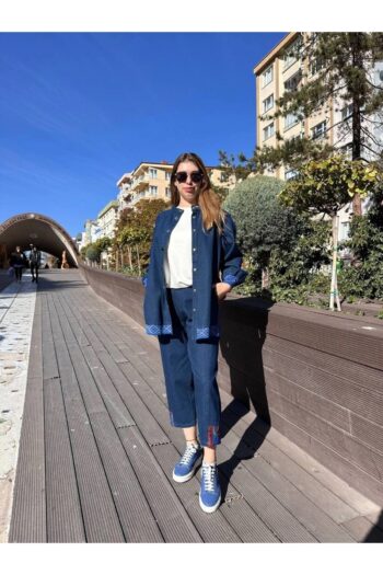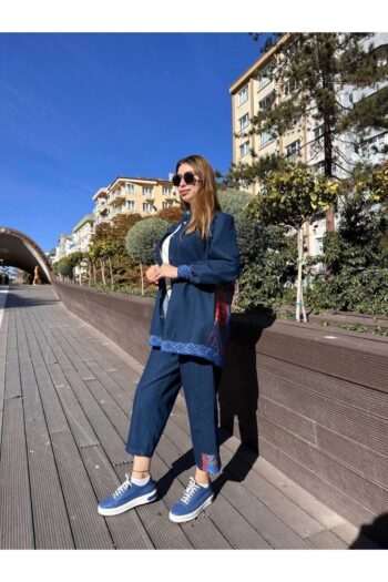 5KGSTKM3915 Mavi Etnik Desenli Kot Takım