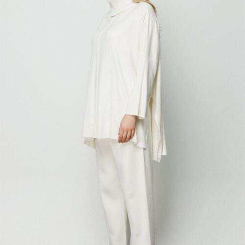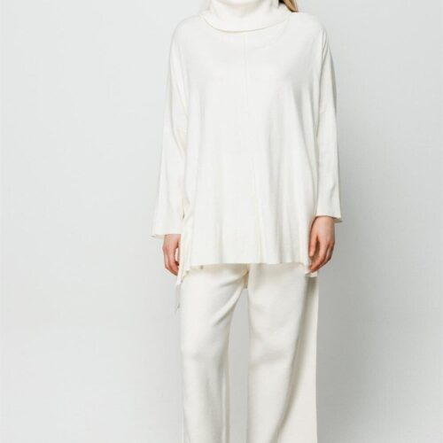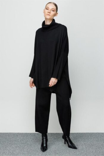 Beli lastikli pantolon balıkçı yaka tunik pantolon triko takım.; –