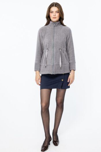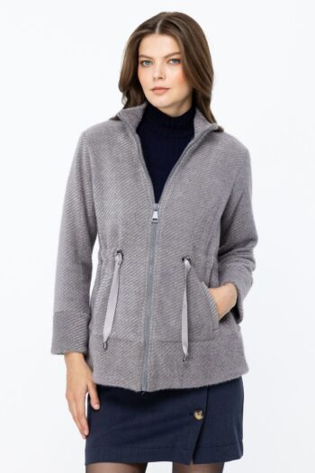 Beli Bağcıklı Stoperli Dik Yaka Ceket