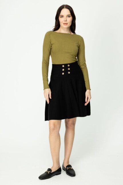 Önü Renkli Nakış İşlemeli Triko Kazak