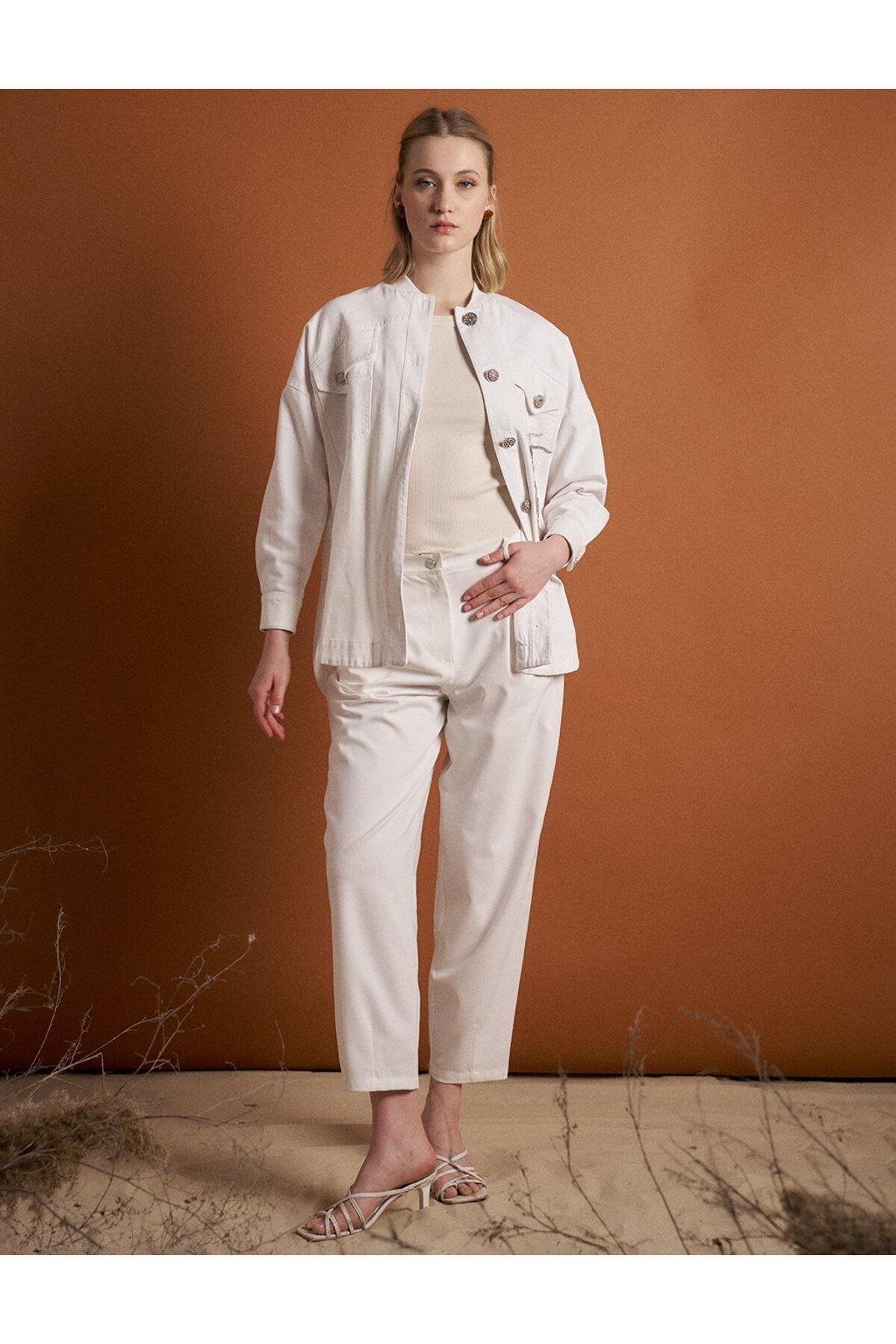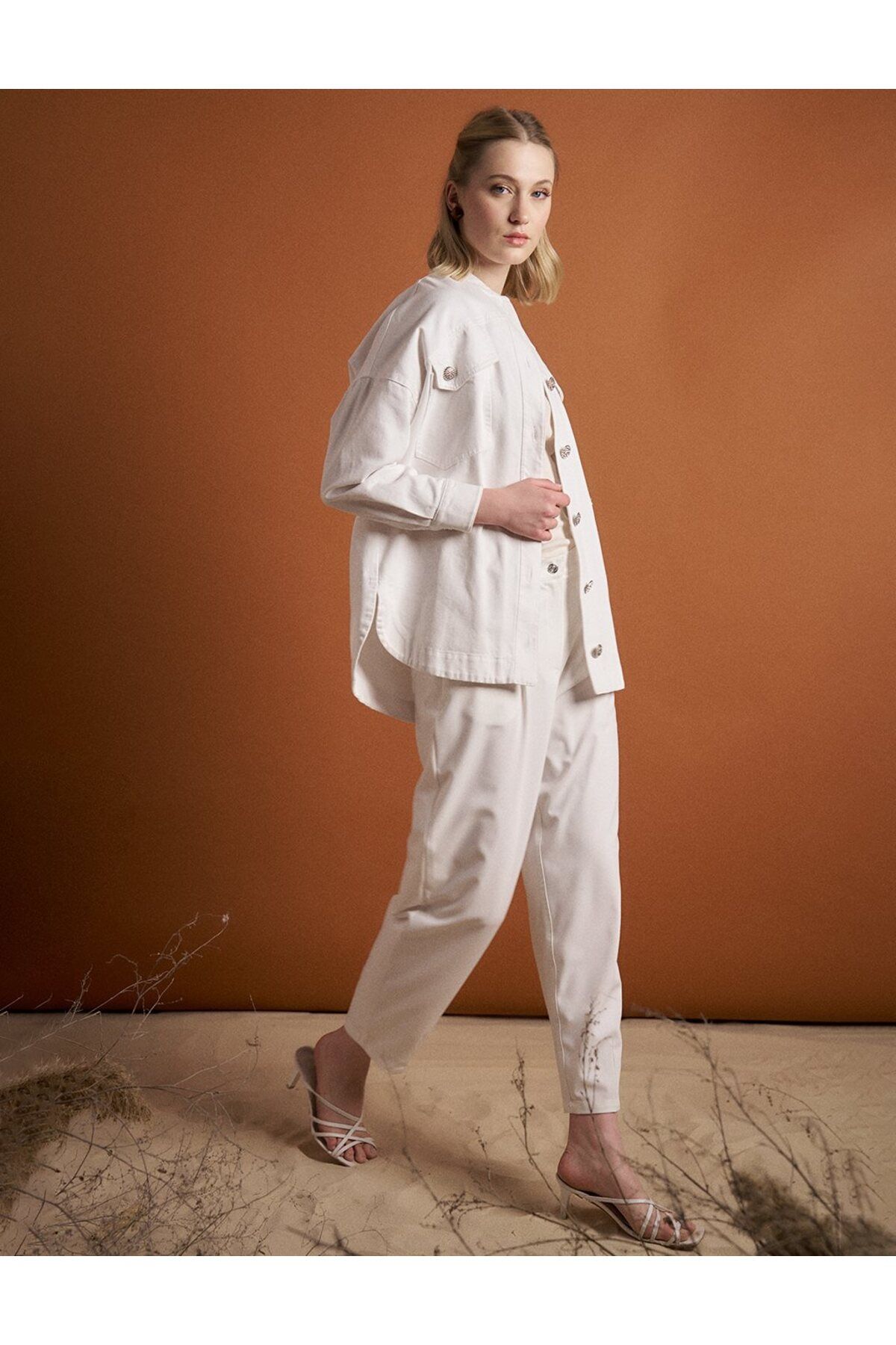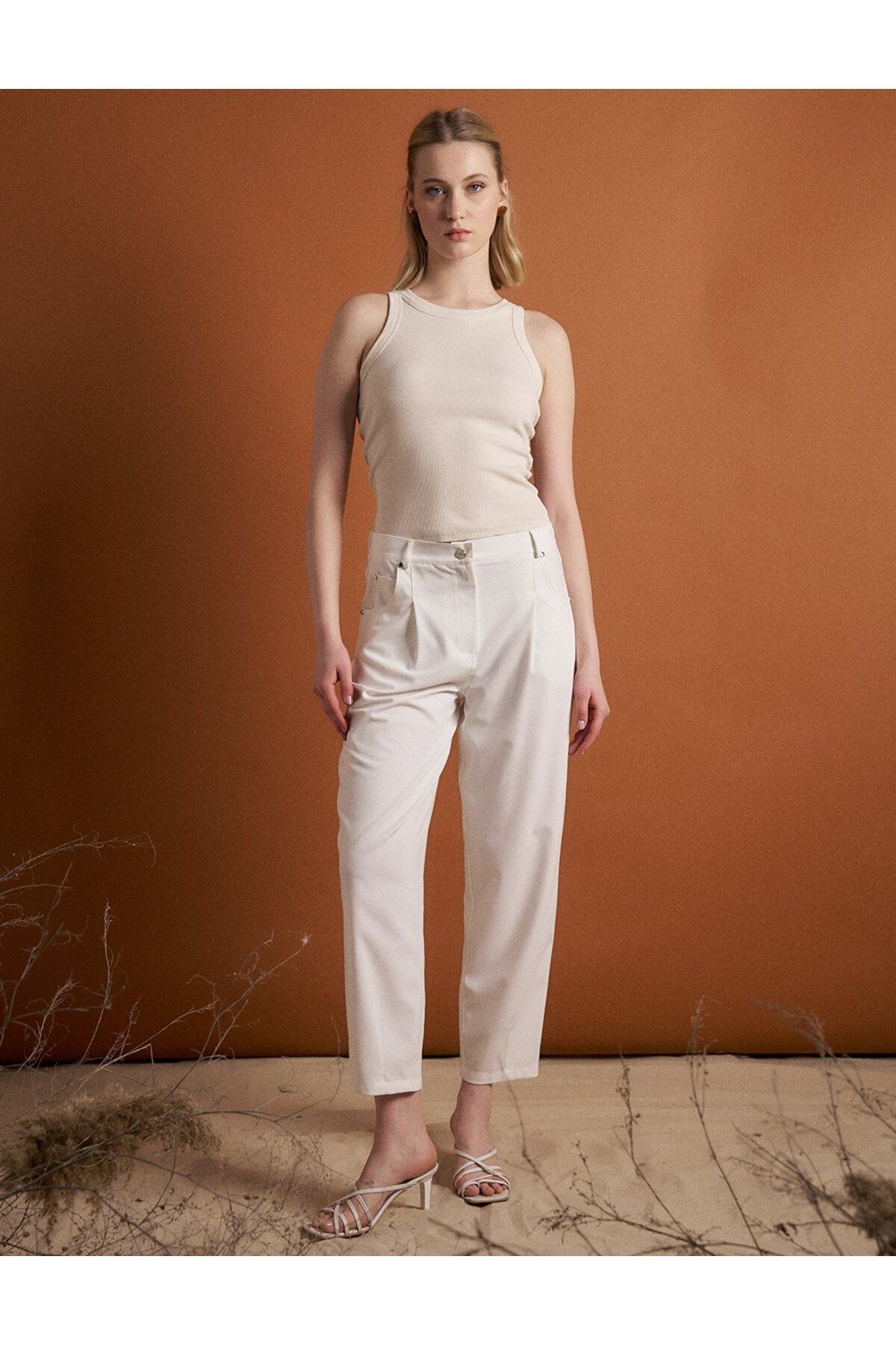 Beli Lastikli Havuç Pantolon Ekru