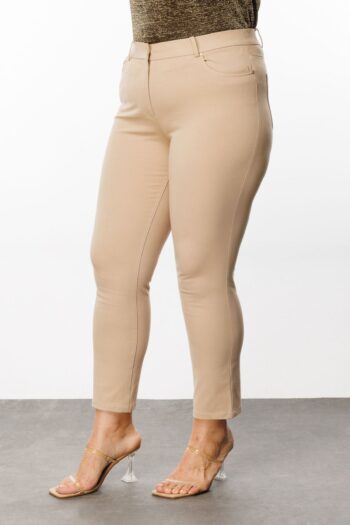 Standart boy kesimiyle her vücut tipine uyum sağlayan beli lastikli kanvas pantolon, rahat bir kullanım sunar; Kanvas dokuma tipi sayesinde dayanıklılığı ve konforu bir arada yaşatır, uzun süreli kullanımlarda bile formunu korur; Düz tasarımı ile sade ve şık bir görünüm elde edilirken, beli lastikli yapısı sayesinde kolay giyilip çıkarılabilir; Yüksek bel tasarımı ile modern ve zarif bir siluet oluştururken, tüm yaş gruplarına hitap eden geniş beden skalasıyla herkes için idealdir;