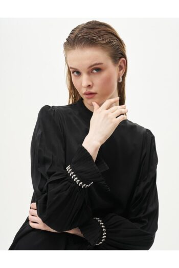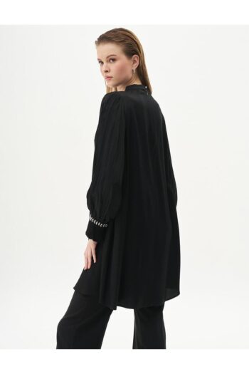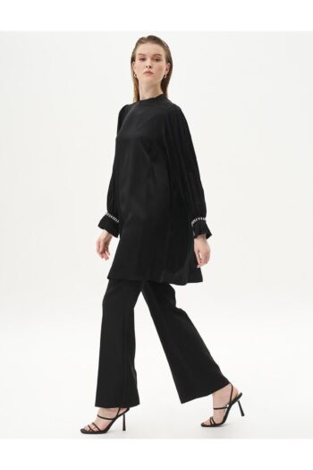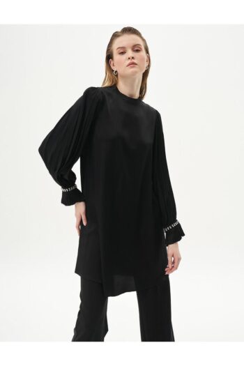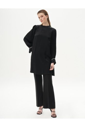 Bilekleri Pileli Saten Tunik Siyah