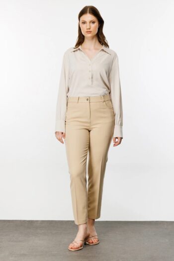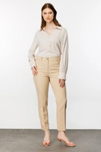 Büyük Beden Dar Paça Bej Kadın Pantolon 24EKL03060