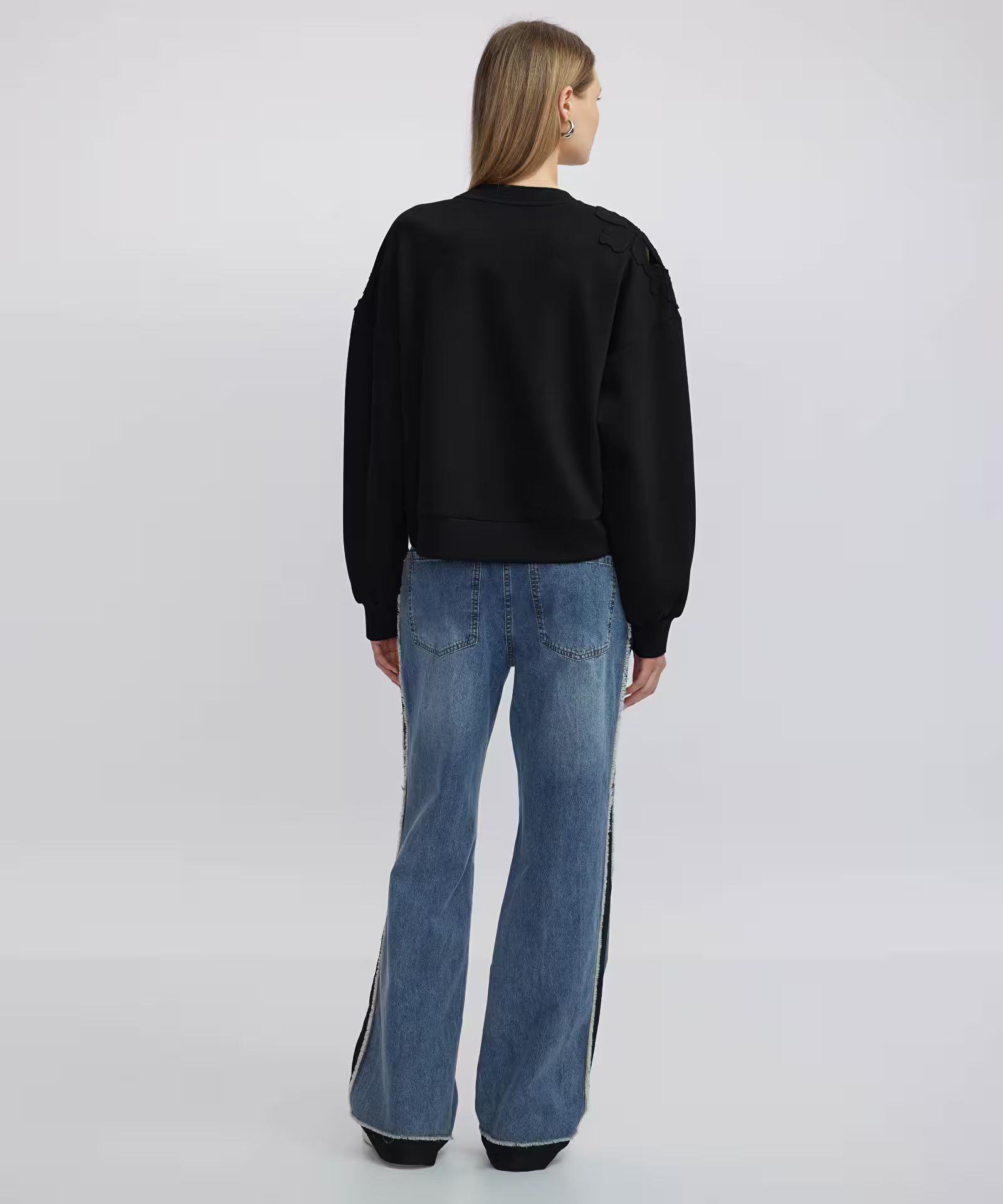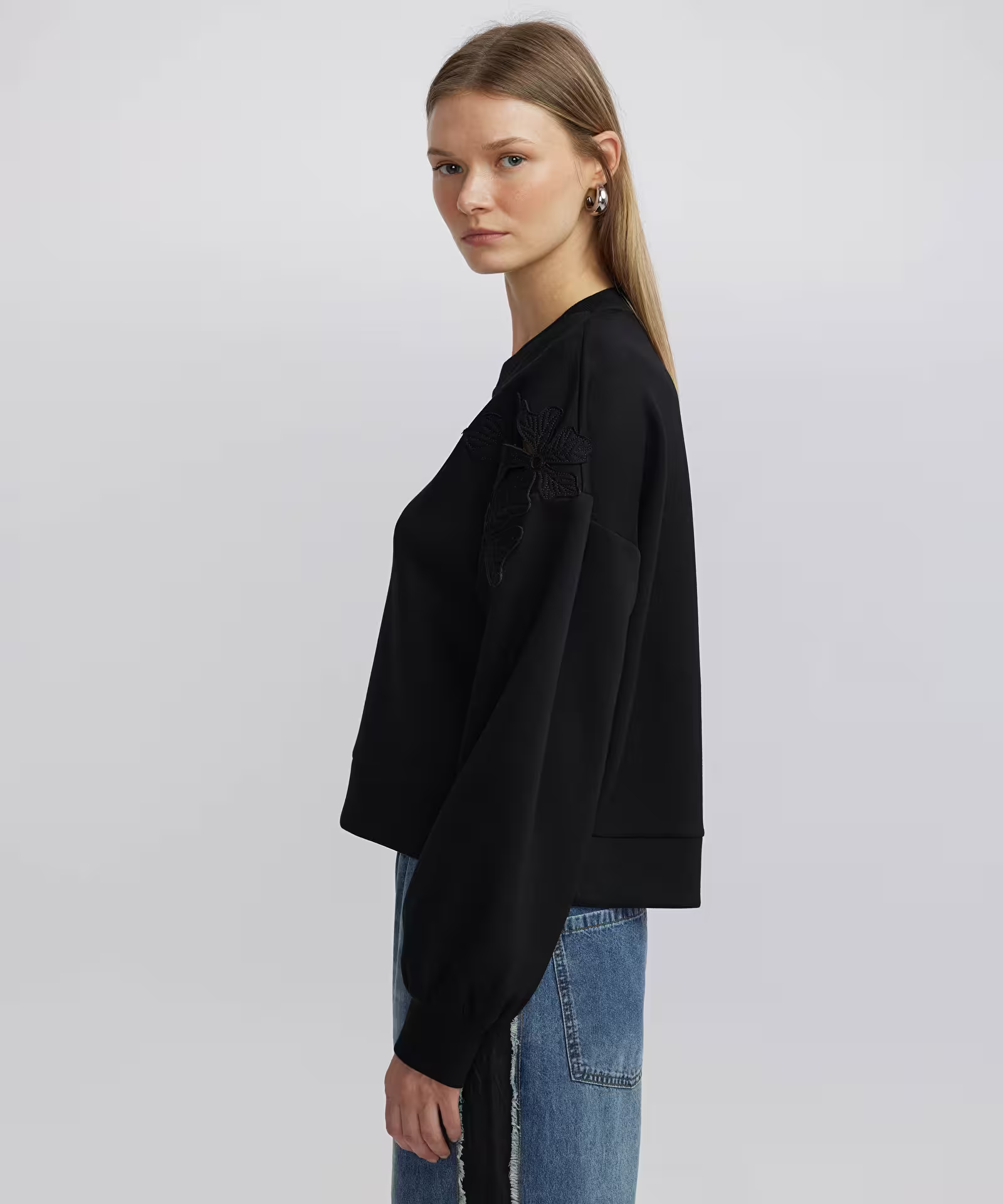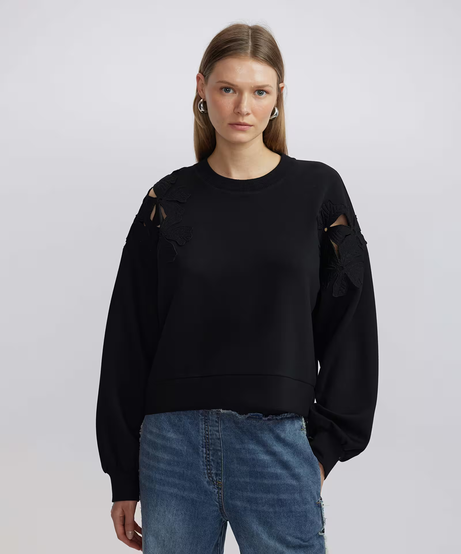 Athleisure trendinin başrol oyuncusu sweatshirt’ler, feminen tasarım detayları ile iş birliğine giriyor. Aplike ve nakışları ile zenginleştirilmiş sweatshirt, rahat kesimi sayesinde konforlu bir stile imza atıyor.