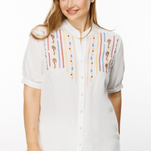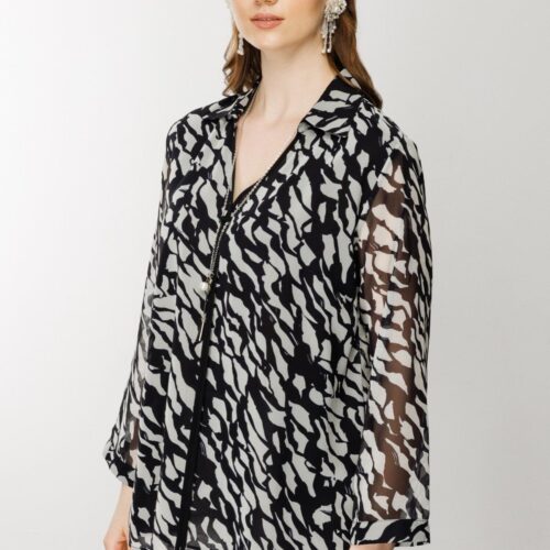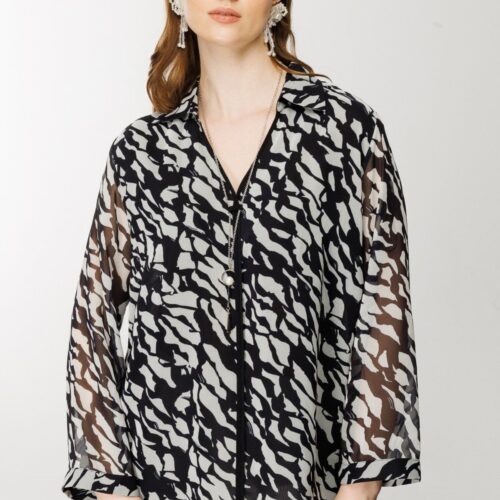 Desenli Kolu Apoletli Bluz
