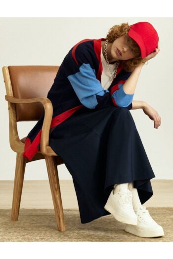 Düşük Omuz Düğmeli Triko Hırka Lacivert