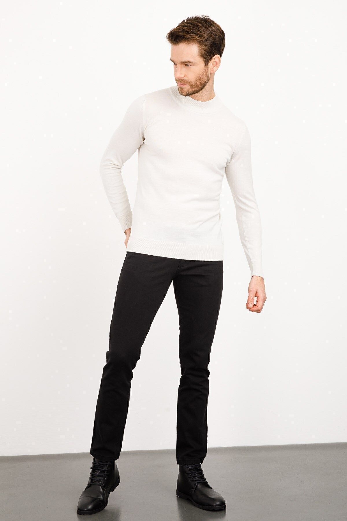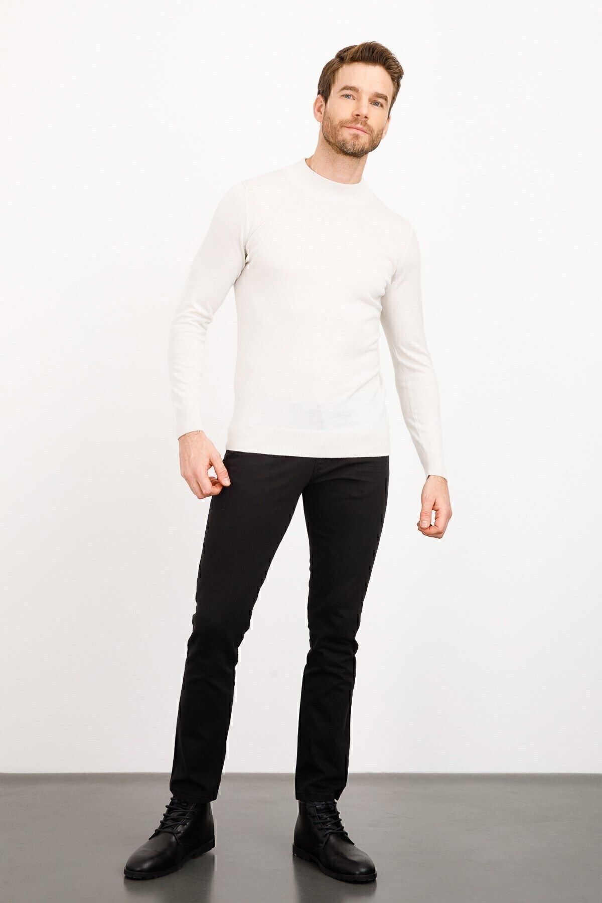 Erkek Basic Yarım Balıkçı Ince Triko Kazak Kemik