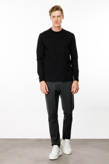 Erkek Sıfır Yaka Basic Uzun Kollu Pamuklu T-shirt Siyah