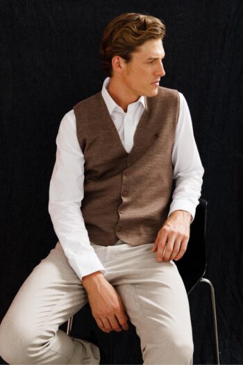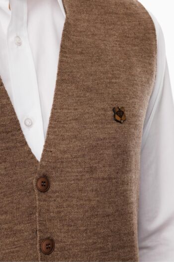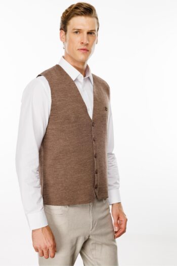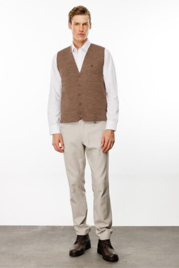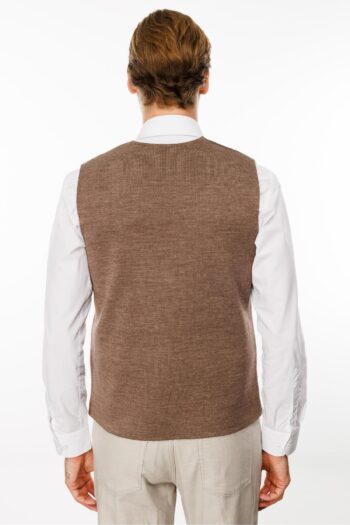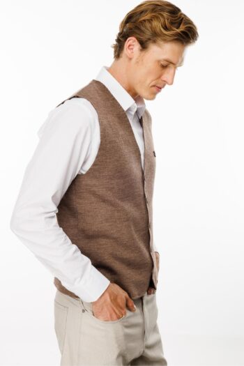Erkek V Yaka Düz Yün Yelek S.Kahve