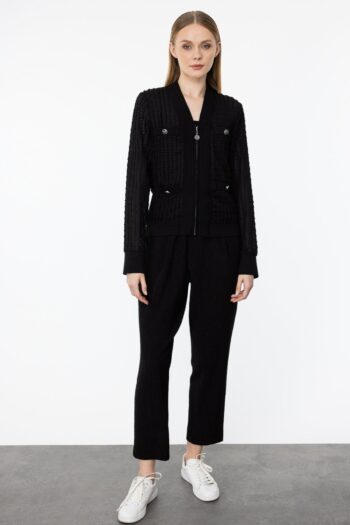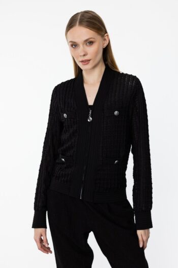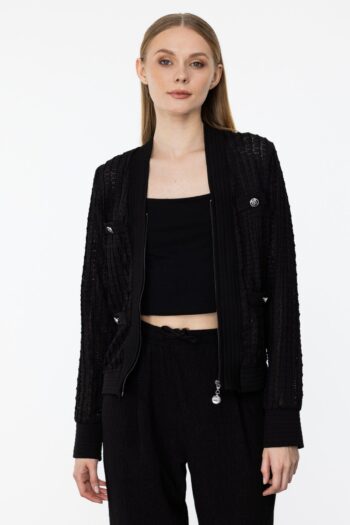Fermuarlı Dantel İşlemeli Hırka