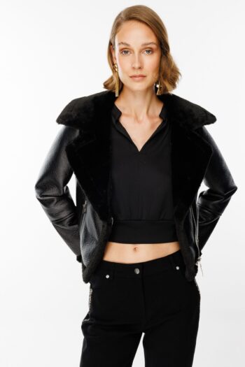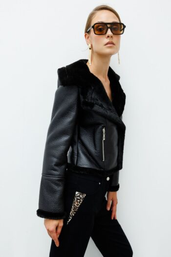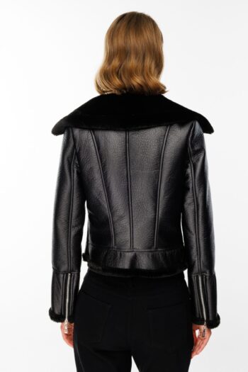 Asimetrik fermuarlı, fermuar cepli, içi peluş, kol kısmı fermuarlı, peluş yakalı, deri görünümlü Ürün Kalıbı: Tam Kalıp Ürün Kalınlığı: Kalın Ürün Boyu: 50 cm Kumaş İçeriği: %50polyester %50 pu Ürün Sezonu: sonbahar/kış Manken Ölçüleri: 1.76 cm 84/61/89 Beden: 36 / S