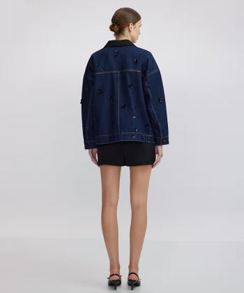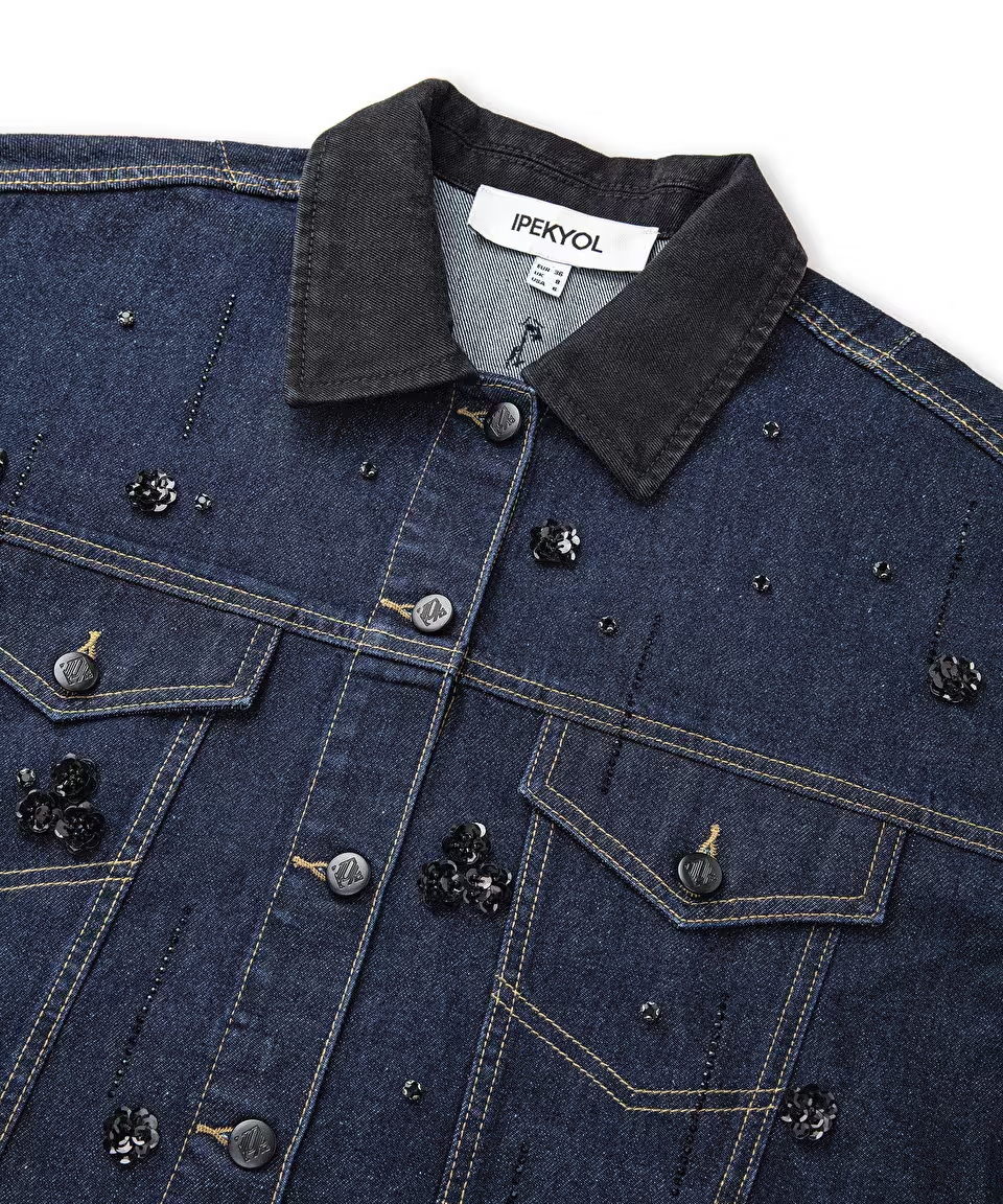 İşlemeli ve hotfix baskılı denim mont