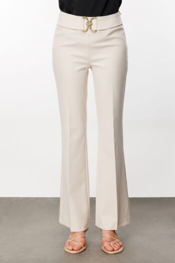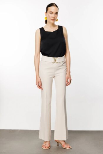 İspanyol Paça Beli Tokalı Pantolon Bej-3024