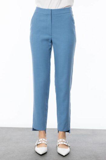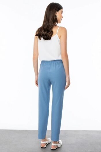 Kadın Beli Lastikli Dar Paça Pantolon 5238 Mavi