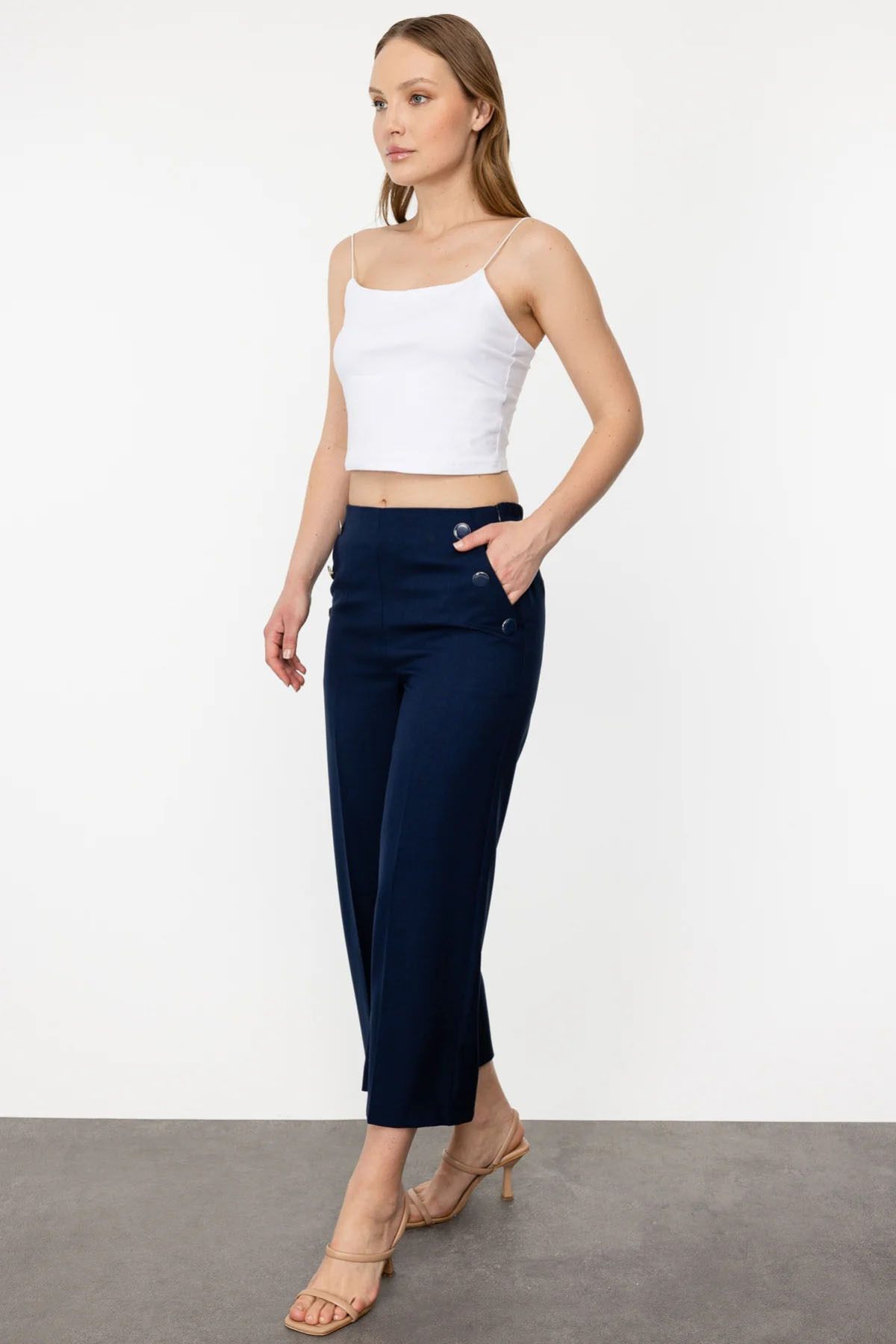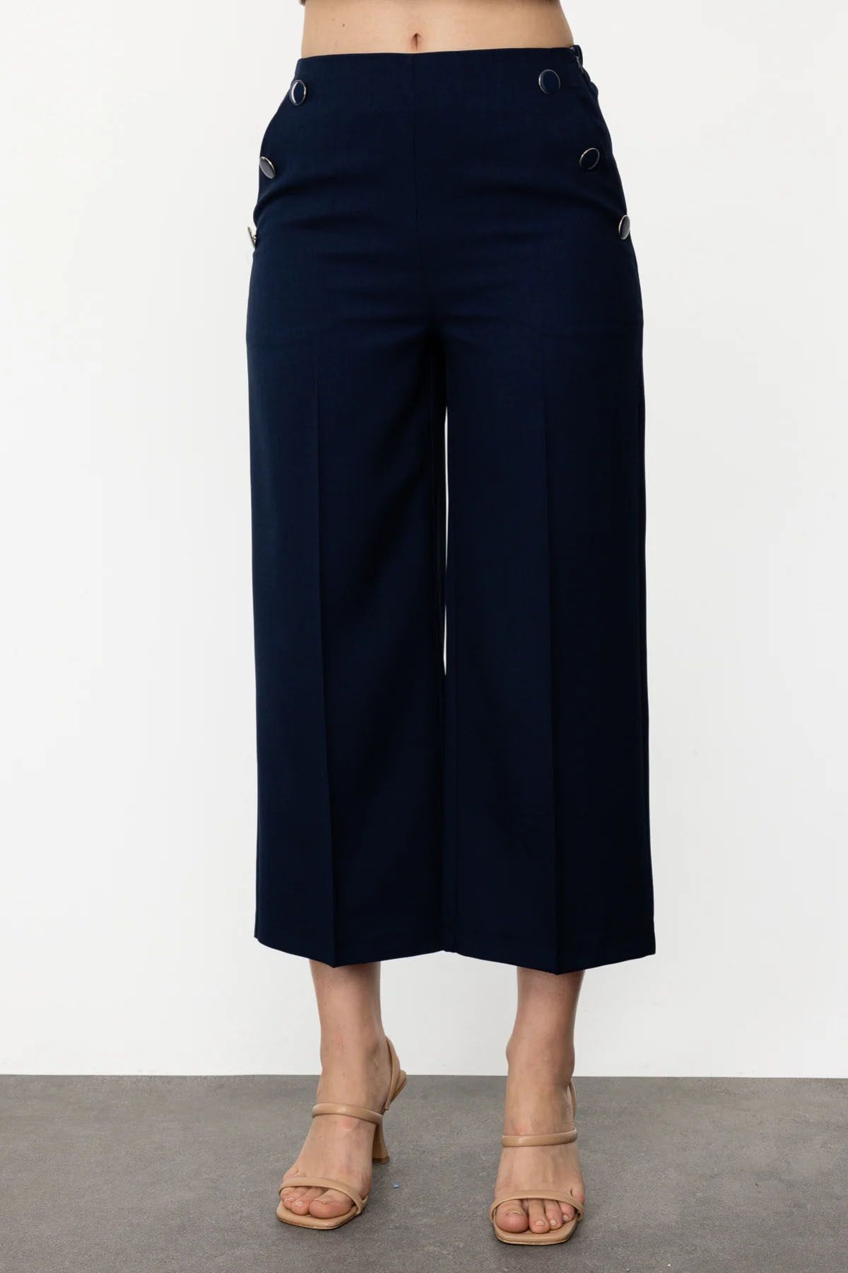 Kadın Geniş Paça Kapri Pantolon 3080 Lacivert