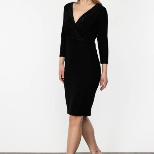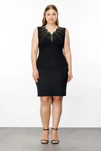 Kadın Kolsuz Taş Baskılı Abiye Elbise 4686 Siyah