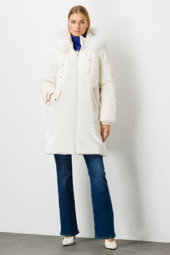 Ürün Tipi: Kaban;Materyal Bilgisi: %100 Polyester;Kalıp Bilgisi: Standart;Detay: Parlak Kumaş Kürk Kapüşonlu Kaban, şık ve fonksiyonel özellikleri ile dikkat çeker.; Kürklü kapüşonu ve fermuar kapamalı tasarımıyla soğuk havalarda sıcaklık ve rahatlık sunar.; Kolucu lastikli ve yandan fermuar cepli detayları, kullanışlılığı artırır.; Orta kalınlıkta ve 90 cm boyunda olan bu kaban, tam kalıbıyla mükemmel bir uyum sağlar.;Model Ölçüleri: Boy – 176, Göğüs – 84, Bel – 61, Kalça – 89;Üzerindeki Ürün: 36 Beden;