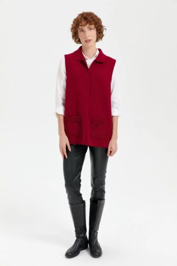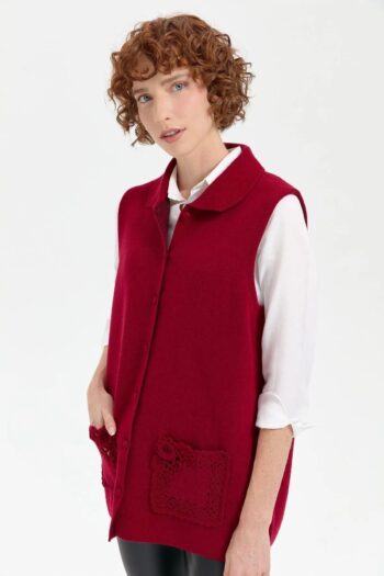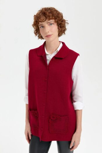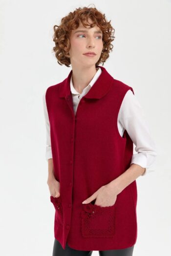 Kadın Polo Yaka Düğmeli Kısa Yün Yelek