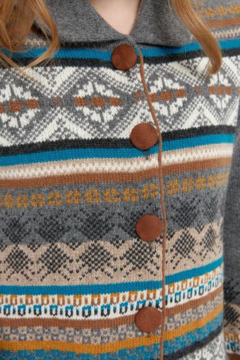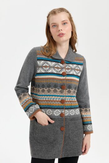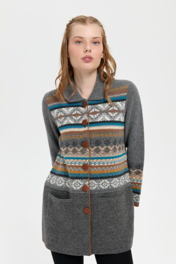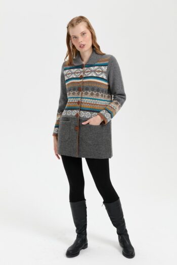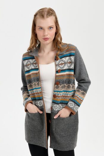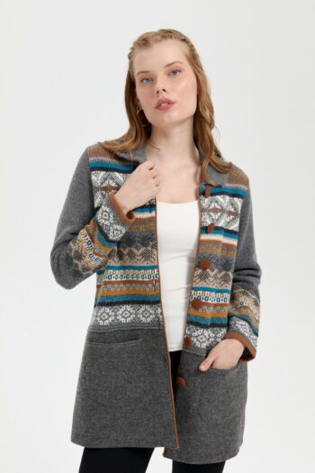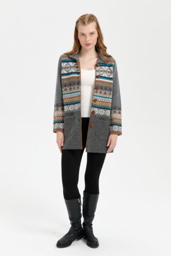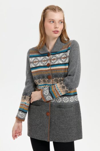 Kadın Polo Yaka Eteği Keçeli Araboy Yün Kaban Füme