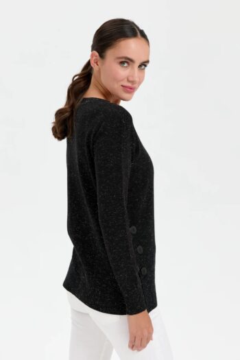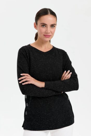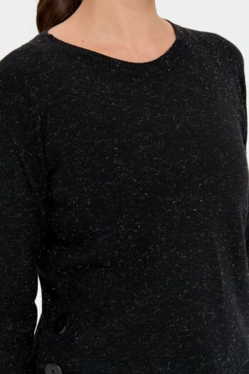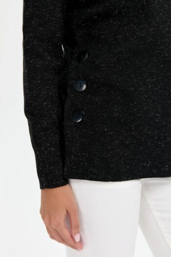Kadın Sıfır Yaka Dikişsiz Yanları Düğmeli Simli Bluz Siyah