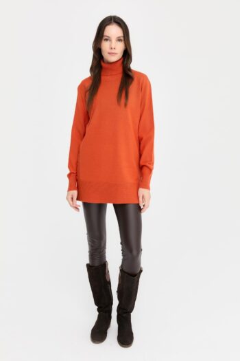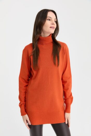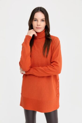 – Standart boy ve regular kalıp ile rahat bir kullanım sunar.; – Triko kumaş tipi, yumuşak dokusuyla gün boyu konfor sağlar.; – Yetişkin ve kadın/kız cinsiyetlerine uygun tasarımıyla herkes için idealdir.; – Canlı portakal rengiyle dikkat çekici bir görünüm kazandırır.; – Uzun kollu tasarımı ile mevsim geçişlerinde ideal sıcaklık sunar.; – Viskon karışım materyali, hafif ve nefes alabilen bir yapıya sahiptir.; – Balıkçı yaka detayı ile modern ve şık bir stil oluşturur.; – Düz deseni sayesinde kolayca kombinlenebilir ve zamansız bir parça haline gelir.; – Tekli paket içeriğiyle pratik kullanım imkanı tanır.; – Cepsiz yapısıyla minimalist bir tasarıma sahiptir.; – Orta kalınlıkta kumaşı mevsim geçişlerinde ideal konforu sağlar.; – L bedeniyle geniş beden skalasına uyum sağlar.; – Kahverengi web rengi, farklı renklerle uyumu kolaylaştırır.; – Düz ürün tipi, sade ve şık bir görünüm sunar.; – Örme detayları ile zenginleştirilmiş dokusuyla estetik bir dokunuş katmaktadır.; – Basic koleksiyonun parçası olarak günlük kullanım için idealdir.; – Tek parça halinde gelmesiyle minimalist gardırop ihtiyaçlarını karşılar.; – Tunik siluetiyle modern ve rahat bir kesime sahiptir.; – Günlük ortamlarda rahatlıkla tercih edilebilir.; – Baskısız yapısıyla sade ve zarif bir görünüm sergiler.; – Örgü dokuma tipi dayanıklılığı arttırarak uzun süreli kullanım vaat eder.; – Sürdürülebilirlik detayına sahip olması çevre dostu bir tercih olanağı sunar.; – Ek özellik bulunmamaktadır, sadelikten yana olanların tercihi olacaktır.; -Kemersiz yapısıyla ekstra aksesuar ihtiyacını ortadan kaldırır.; -%78 viskon, %17 ligra ve %5 sim karışımından oluşan materyal bileşeni yumuşaklık ve dayanıklılık sağlar.; -Ilık suyla elde yıkama ve kuru temizleme önerisiyle kolay bakım imkanı tanır.; -Tüm yaş gruplarına hitap eden geniş kullanıcı kitlesiyle herkes için uygundur.; -Kış sezonunda sıcak tutacak ideal bir seçimdir.; -Türkiye menşeli olması yerli üretim kalitesini garanti eder.
