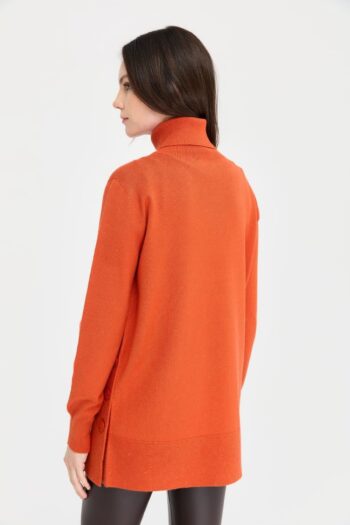Kadın Tam Balıkçı Yaka Dikişsiz Kazak Portakal