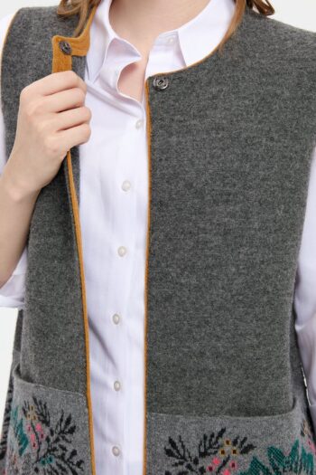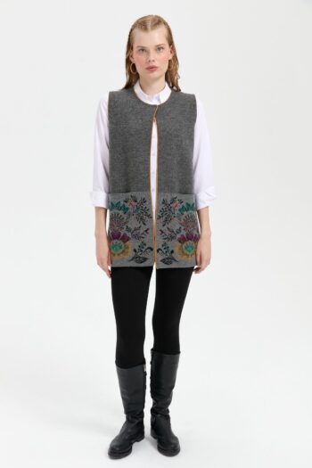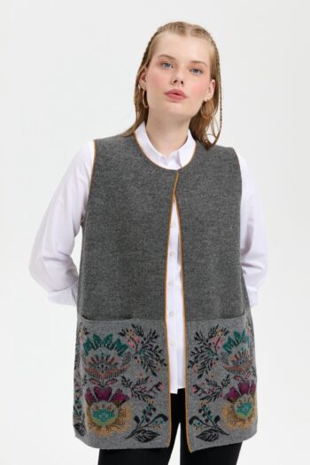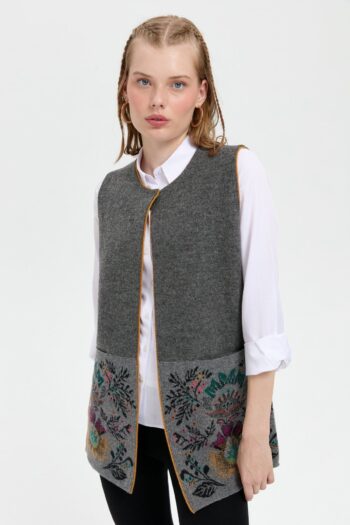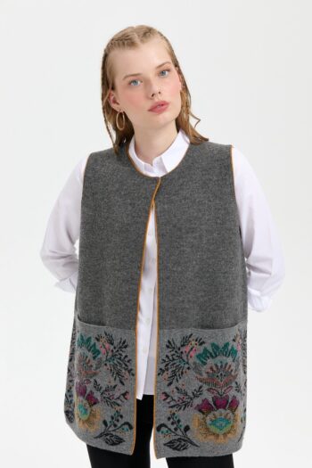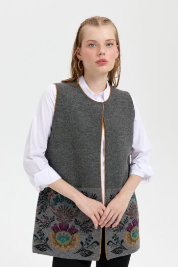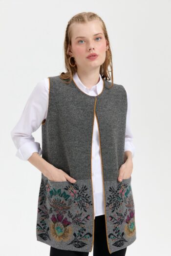 Kadın Triko Önü Açık Araboy Yün Yelek Füme