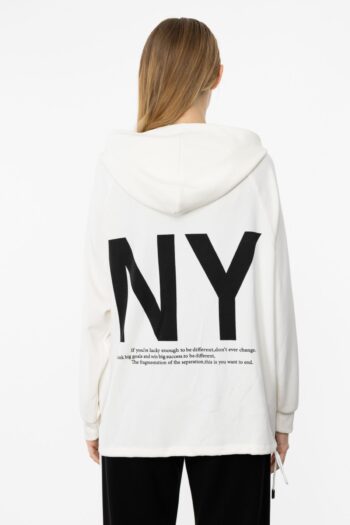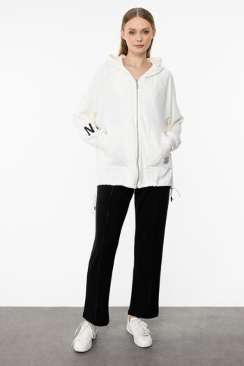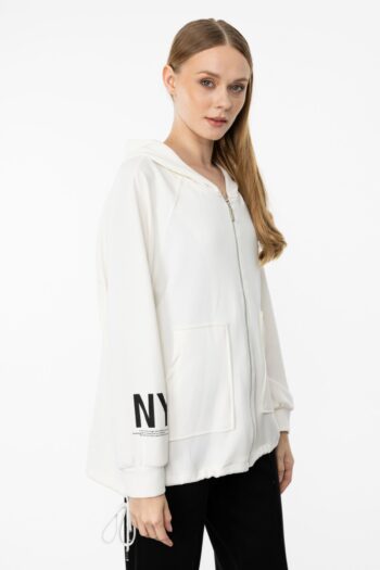 Kapüşonlu Yazılı Fermuarlı Sweat