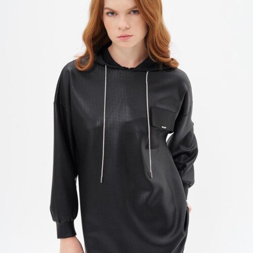 Kadın Kapüşonlu Yazılı Fermuarlı Sweat-Siyah
