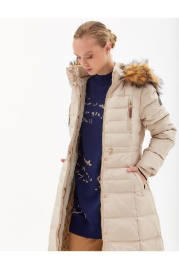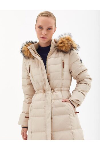 Kaz Tüyü Dolgulu Uzun Mont-Krem