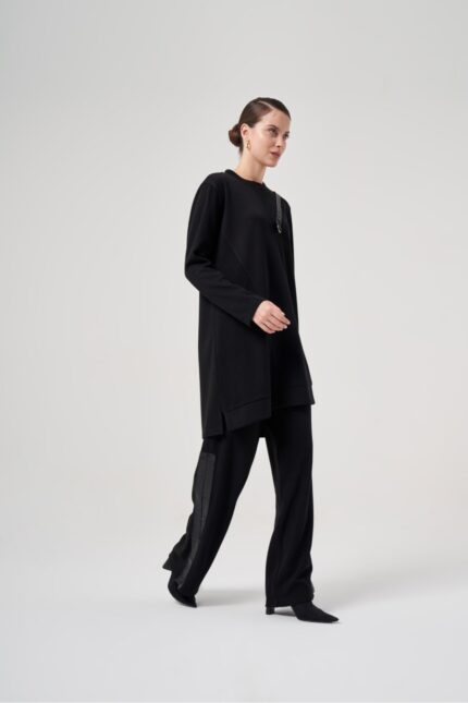 – Uzun boy tasarımı ile şık ve zarif bir görünüm sunar, her türlü kombininize kolayca uyum sağlar; – Dokuma kumaş yapısı sayesinde dayanıklılık ve konforu bir arada sunar, uzun süreli kullanım için idealdir; – Siyah rengi ile klasik ve asil bir duruş sergiler, her mevsim tercih edebileceğiniz bir parça haline gelir;