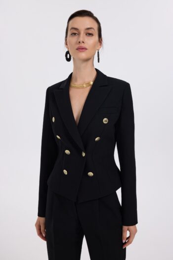 Kruvaze Yaka Süs Düğmeli Ceket