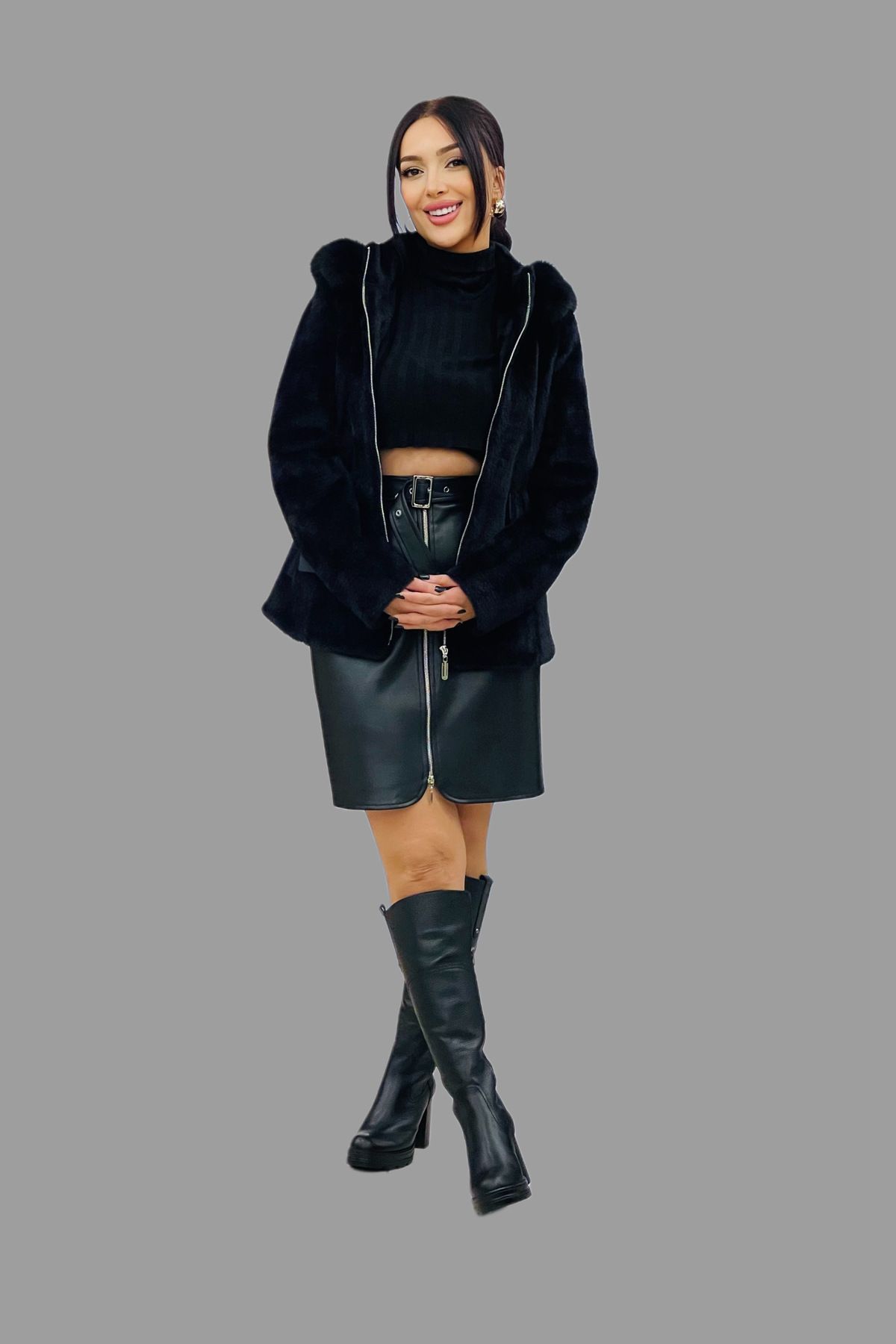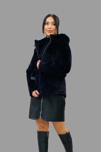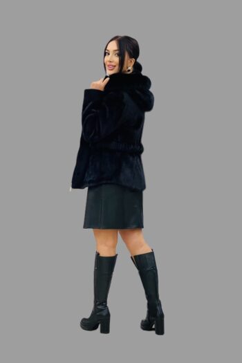 Kürk Yaka Peluş Dokulu Kaban 7047-24K