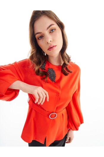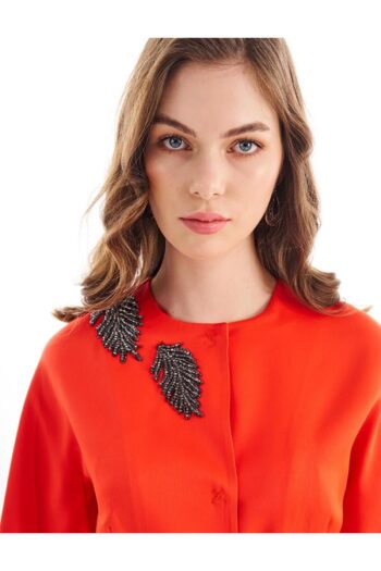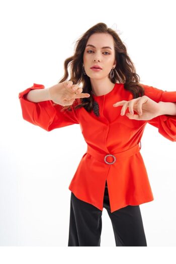 Metal Aksesuarlı Balon Kol Ceket Mercan
