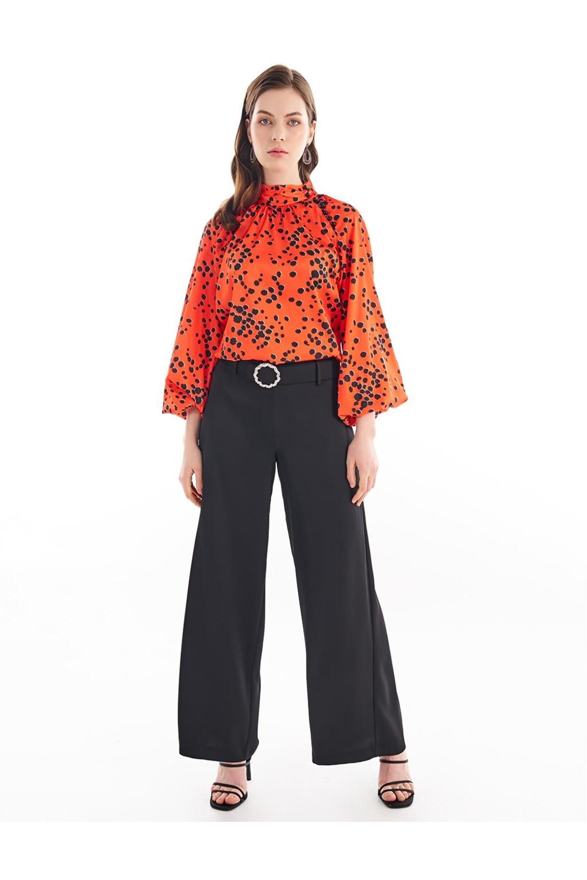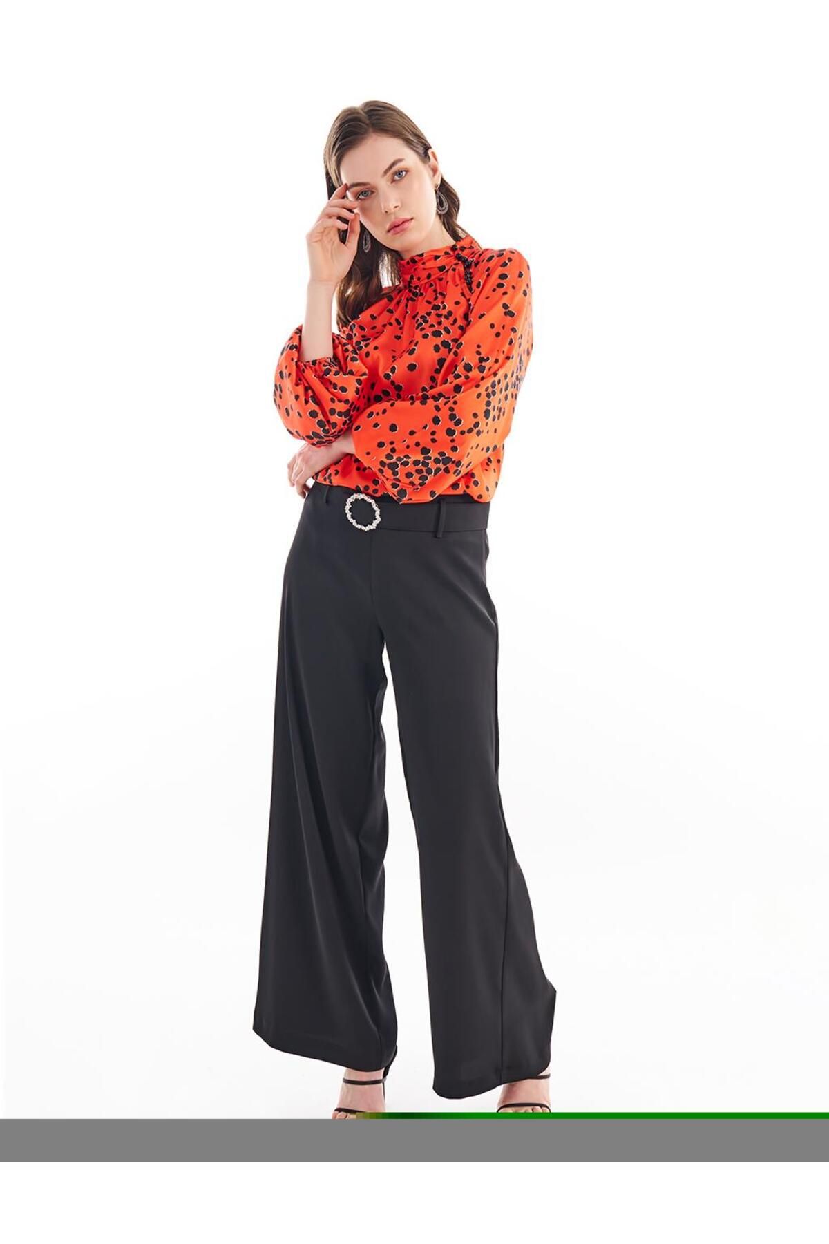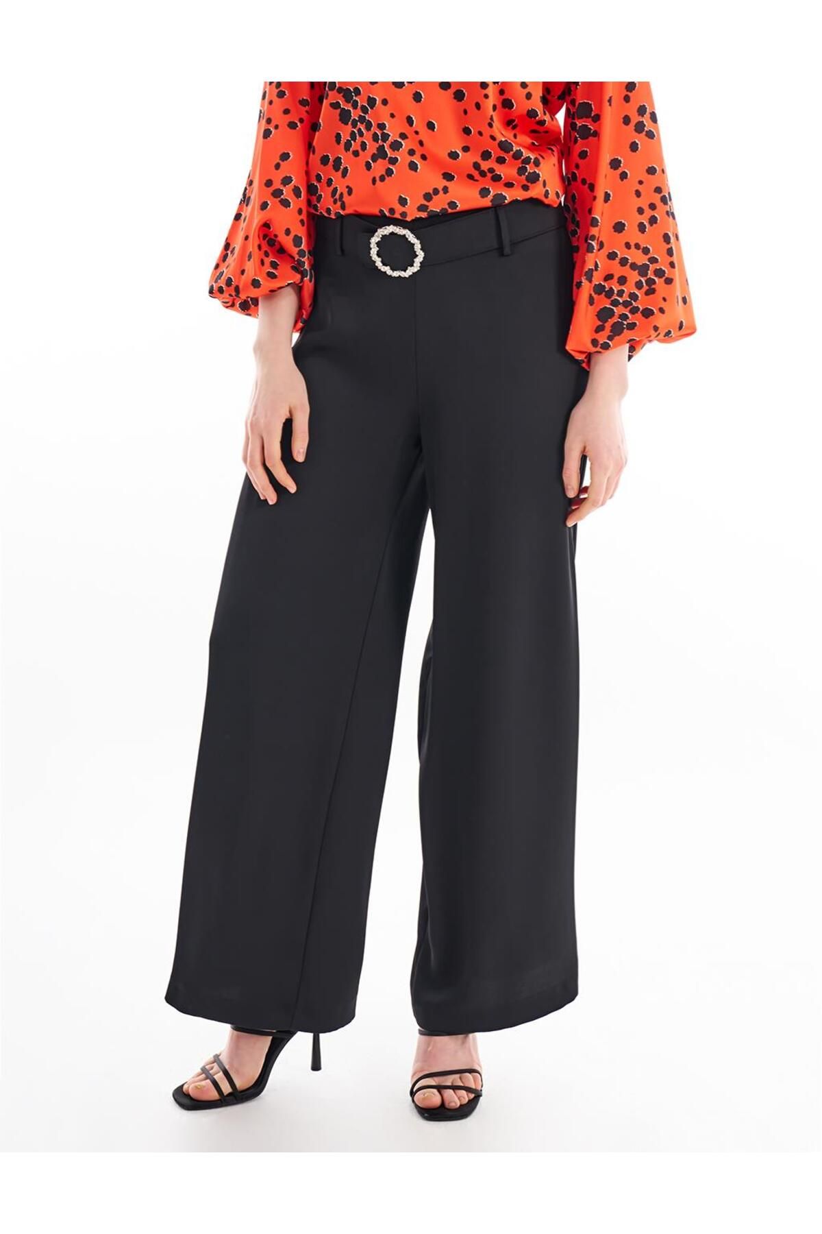 Ürün Özellikleri: Normal bel; Gizli fermuar ; Metal tokalı kemer ; Bol paça; Kayra Metal Aksesuarlı Pantolon, şıklığı ve modern tarzı bir araya getiriyor. Özel tasarlanmış metal detaylı kemer, pantolona zarif bir dokunuş katmaktadır. Rahat kesimi ve dayanıklı kumaşı ile hem günlük hem de özel günlerde kullanıma uygundur. Bluz, gömlek ve aksesuarlar ile ideal bir görünüm elde edebilirsiniz. Ürün Boyu: 107 cm