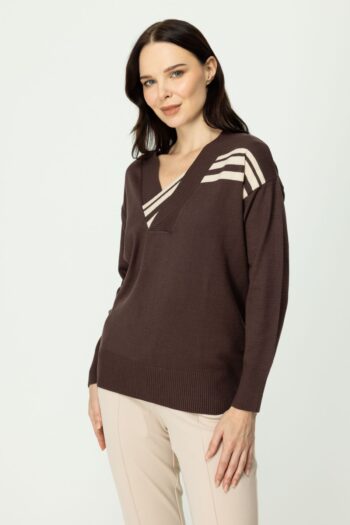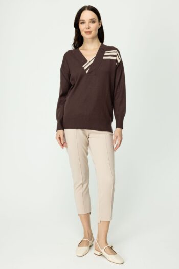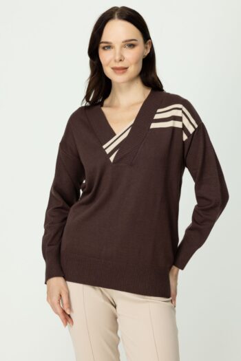 On Yaka Ve Omuz Şerit Detaylı Triko Kazak