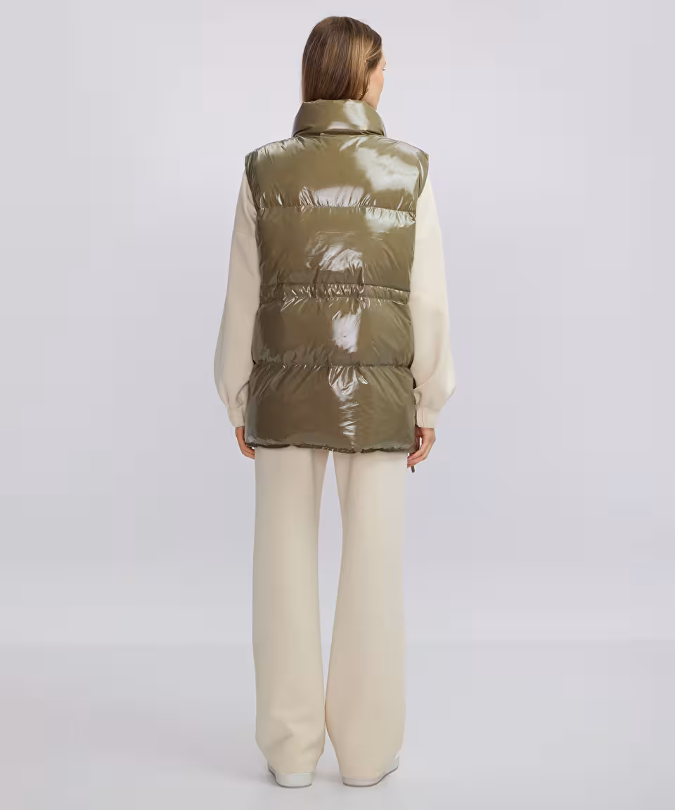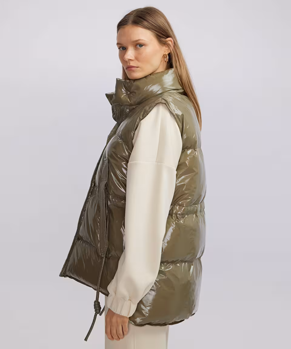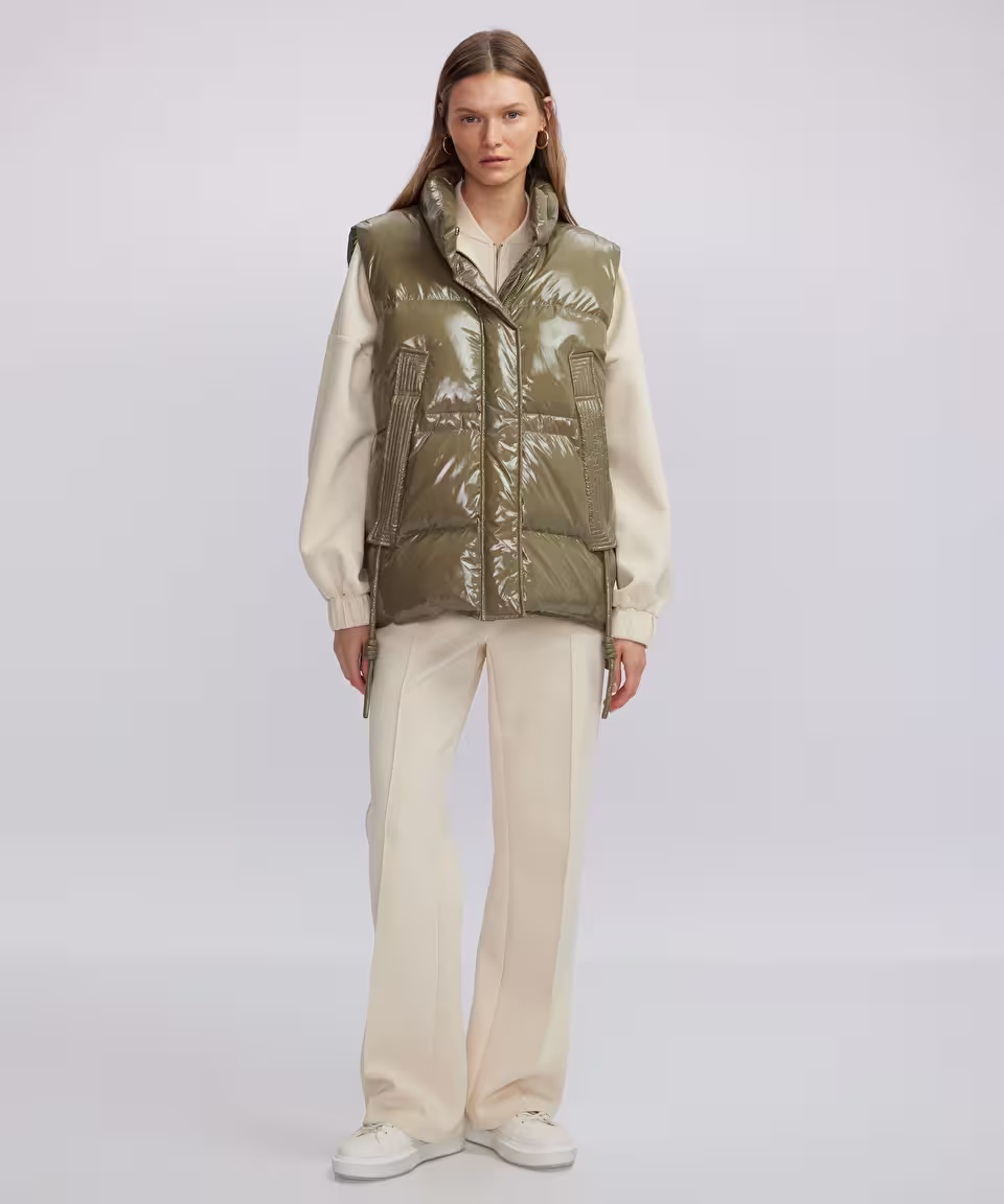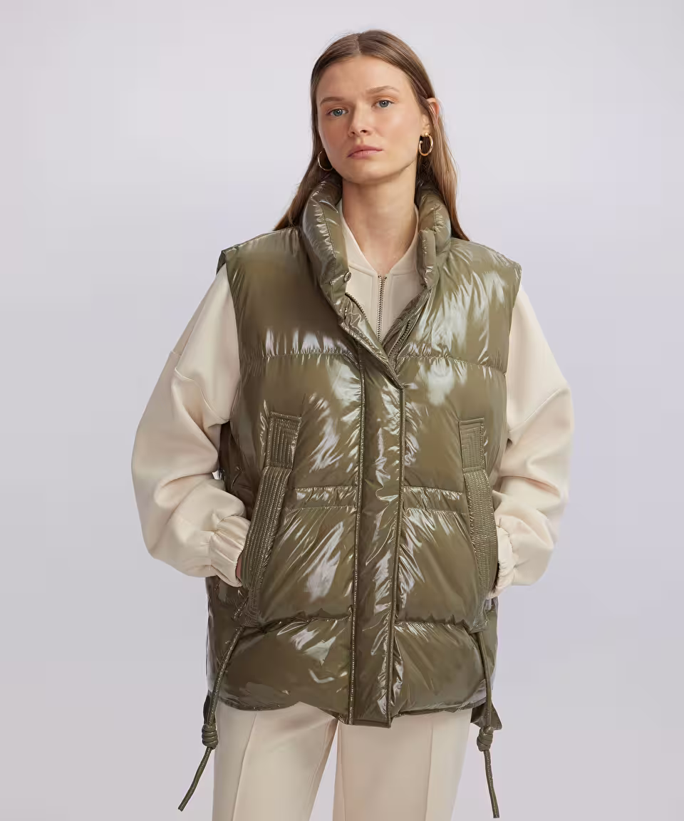Sportif görünümlerin başrol oyuncu şişme yelekleri radarınıza alın. Fermuar ve çıtçıt kapaması yelek, asimetrik etek ucu ile detaylanıyor.