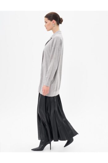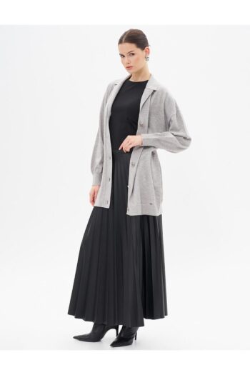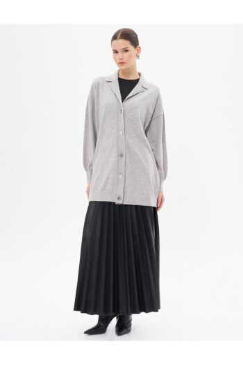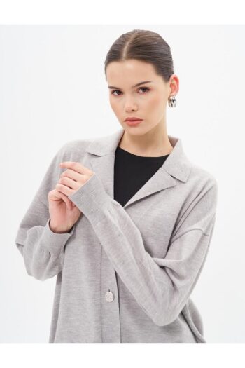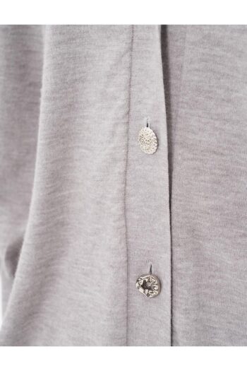 Parlak Düğmeli Triko Hırka Gri