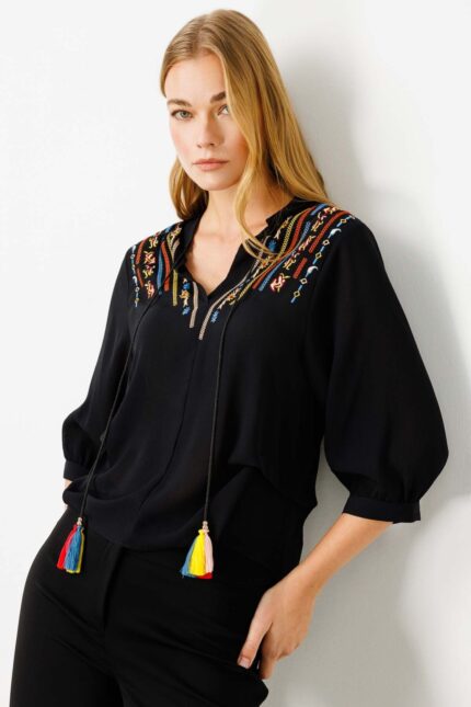 Kadın Önü Nakış Detaylı Bluz 1006 Siyah