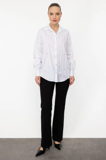 – Dokuma kumaş yapısı ile konforlu bir kullanım sunar ve gün boyu rahat hissetmenizi sağlar; – Uzun kollu tasarımı, mevsim geçişlerinde ideal bir tercih olup, serin havalarda ekstra koruma sağlar; – Regular boy ve kalıp sayesinde vücut hatlarınıza uyum sağlayarak şık bir görünüm kazandırır; – Her yaş grubuna hitap eden tasarımıyla geniş bir kullanıcı yelpazesine sahiptir; – Pratik düğmeli detayları ile kolay giyilip çıkarılabilir ve farklı stiller yaratma imkanı sunar; – Uzun kol boyu, kollarınızın tamamını örterek şık ve zarif bir siluet oluşturur; – Taş baskılı deseniyle modern ve trend bir görünüm sergiler; günlük kombinlerinizde fark yaratmanızı sağlar;