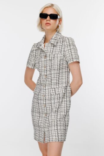 Süs Cepli Düğme Detaylı Midi Boy Elbise