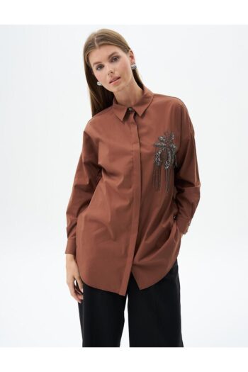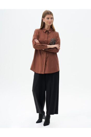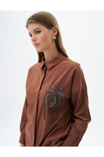 Taş İşlemeli Poplin Tunik Koyu Kahve