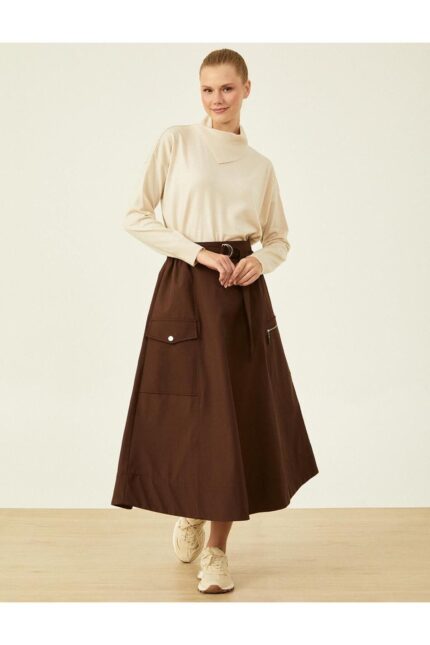Metal Aksesuar Detaylı Çan Etek Koyu Kahve